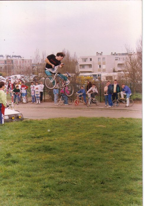 Début des années 2000, sur la responsabilité de mon ami "hors d'axe", nous organisons un contest au skatepark Le Hangar : L’Aérobic. Une bonne partie des bmxers nantais sont là ainsi que d’autres de la région et d’ailleurs. Parmis eux j‘aperçois un type, plus calme que la moyenne, discret, l’air sage. Son vélo est super bien monté que ce soit au niveau de « l‘accord des pièces entre elles;de leur qualité de leur rareté, du choix des marques,du réglage. Ça à l’air banal pour lui. Avec mon super esprit observateur je me dis qu’il doit être anglais Ils sont souvent plus recherchés,classes et plus stylés que les français.