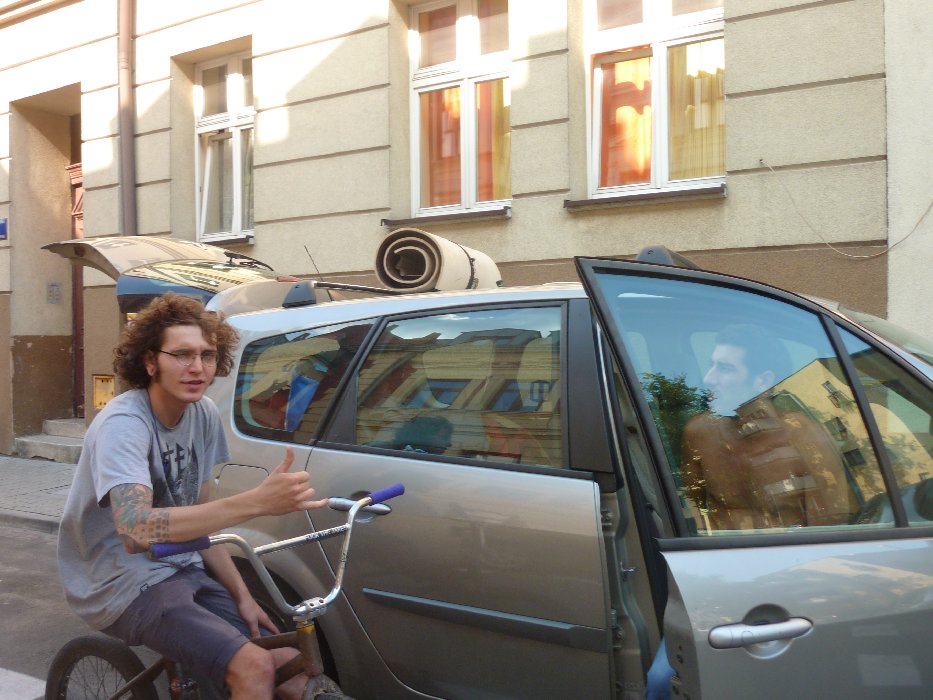 To jest kiedy kierownice,o okolo 6 rano, ze dojechaliszmy na polskiej autostradzie; samochod zaczal tworzyc rodeo! obudzilem sie i zobaczylem Benoit usmieszony: "Zapraszam na polskiej autostradzie" Ale po 30 km, autostrada wruczila do pozandku, i dojechaliszmy do parku BMX Krakow, gdzie Kuba Kubson (wielki facet wszystkim zrelaksowany) dolaczyl siedo nas i tesz jeden blondyn, ktory sprawia marke Totem (bardzo pozytywny ten facet), Wieczorem sarkastyczny facet,ktory jezdzic ATV, zaproszil nas do domu i nawet goscil na, bo jestem przyjaciol Gilian, John Peralta... Dziekowanie dla "Zela Gol", ktore mieszkanie znajduje sie w zakolu izeki w Krakowie z pieknym widokiem.