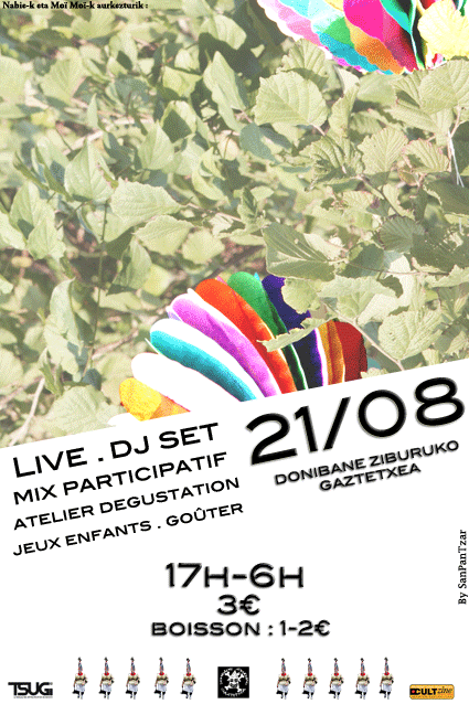 / 21/08/2009Je me souviens avoir souvent croisé Pierre, il y a quelques années maintenant, dans des soirées durant lesquelles nous dansions sur de la musique allemande à moustache ou nord américaine à mèche. Pierre fait partie d'une association, Moï Moï. Quelle joie d'apprendre que Moï Moï organise un événement le 21 août au gaztetxe d'Acotz, au-dessus de Lafitenia.
