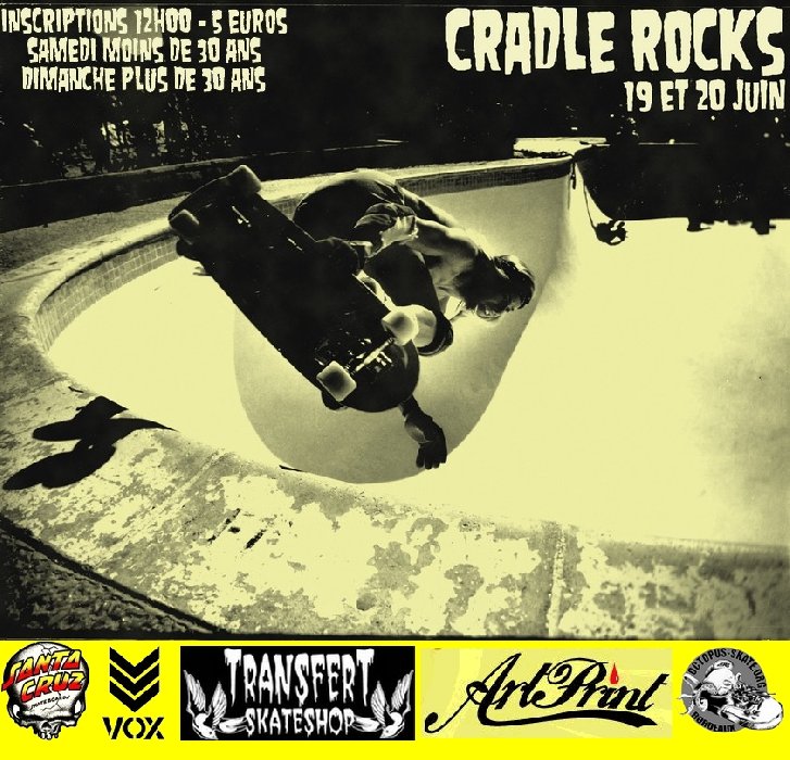 Ce week-end, sur les quais à Bordeaux se tiendra l'édition 2010 du Cradle Rocks organisé par Octopus et Transfert Skateshop. Contest pour les jeunes le samedi, pour les vieux le dimanche.
