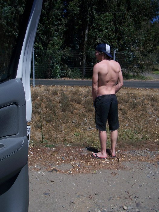 On s'est levé vers les 11h, Lalo a un peu mal a la tête, on a pris un petit déjeuner a l'épicerie avec Sylvain et puis on a mangé avec les autres, après ils étaient pas motivés pour bouger, les filles se mettaient du vernis a ongle tout en faisant les princesses avec Sylvain on commence a en avoir marre. L'une des filles m'avait parlé au début en anglais et là elle m'ignore, puis elle passe son temps à taxer des clopes a Sylvain sans dire "s'il te plait" et avec aucun respect enfin bref ca fait bizarre.Donc pendant qu'ils glandaient Sylvain a écrit ses cartes postales et moi j'ai dormi, et puis d'un coup JP passe et nous dit qu'il faut partir, ils sont déjà dans le pickup, leurs sac rangés dans la voiture de Moto, ils allaient nous oublier ou quoi ? Donc on a du se dépêcher sans trop savoir où on allait.