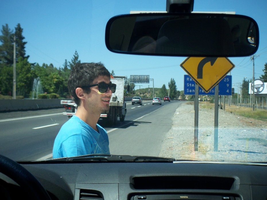 Aujourd'hui c'est le retour à Santiago presque 800 km à faire, le départ était prévu à midi on est parti à 13h30, on s'est arrêté à Pucon pour manger et en fait on a commencé a prendre la route à 16h :)