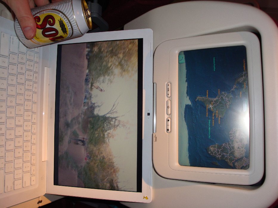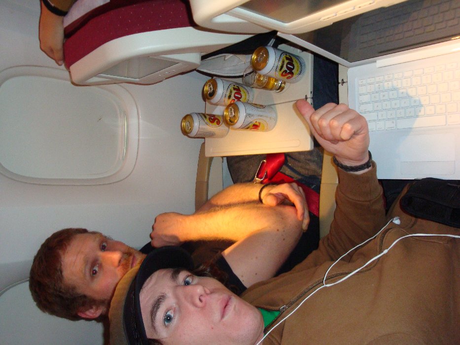 Sylvain n'est pas arrivé à dormir pendant le Francfort/Sao Paulo, c'est à dire pendant les 12h du vol et en plus il était coince côté hublot, moi de mon côté j'ai bien dormi :)