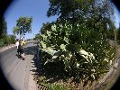 Donc on est parti au bout de quelques km Sylvain se rend compte qu'on a oublié les bières dans le frigo, et, j'oubliais, on est trois dans une sorte de polo pickup avec deux places, donc je suis assis entre les deux sièges sur des coussins et le frein à main, bon pas le top du confort, après un peu plus d'une heure de route on arrivé au champs de bosses, après avoir acheté des bières bien sur, et de l'eau je préfère boire de l'eau pour rouler :) Avec Lalo on a roulé, Sylvain nous filme ou nous prend en photo le tout avec bière et clope a la main, il fallait le voir entre le caméscope, la bière et la clope le tout avec son genou :)