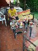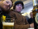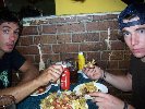 Sylvain et Lalo ont déjà bu pas mal de bière et sont déjà un peu saouls, enfin Sylvain beaucoup plus que Lalo, il finit par s'endormir dans la voiture. Puis on s'est cherché un truc à manger où on peut rentrer les vélos vu qu'on a pas de cadenas, et on a fini par trouver un truc où on a mangé des frites avec une omelette aux oignons et de la viande.