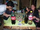 De retour on va direct au truc du camping pour manger un sandwich avec une biere et puis a la tombée de la nuit on est allé à la maison et puis comme chaque soir y'avait du piscola, du rhum et des bières. en tout on est 13 nous avec le groupe de 9 plus les deux autres couples, ceux avec le chien puis Ariel et Denise.