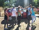 Donc, direction le lac à 9 dans le pickup donc 4 dans la benne, arrivé au lac, à peine installé, Moto part sur l'ile avec les palmes, je le suis sans palmes et les autres arrive en bateau, le bateau des filles et JP met un peu de temps à arriver vu qu'elles n'ont pas de rames.