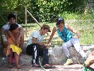 Apres direction l'épicerie pour... acheter des bières :) les trois filles sont restées à la maison, et nous on va à un lac qui n'est pas très loin, c'est trop joli là, c'est l'été donc le lac est plus bas que d'habitude. On a tous traversé le lac sauf Lalo, c'était bien long, après on est monté sur l'ile enfin normalement quand le lac est plein c'est une ile. Et puis retour de l'autre coté Moto n'a pas le courage de nager pour rentrer et est rentre a pied, pieds nu avec les cailloux ca ne me faisait pas envie et puis ca a l'air bien long.