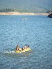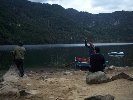 Apres on est rentré en croisant la bande à Lalo, mais bon il sont trop lents donc on redescend sans eux, en passant par une cascade avec Sylvain et Moto, arrivé au camping on a mangé 2 sandwichs, bu 2 bières et direction le lac pour repêcher mais cette fois c'est avec Ariel, BigMac, JP, Sylvain et moi, on rejoint Moto et un autre gars au milieu du lac ils sont partis en bateau gonflable pour boire et fumer au milieu du lac, on les tracte jusqu'au spot ou on a attrape le poisson d'hier mais bon avec le bruit qu'ils font les poissons sont déjà loin, on est aller sur la plage et qui est à coté mais bon ça mord pas trop avec le bruit, à la tombée de la nuit on est retourne au camping, Jp commence a ramer mais il est encore moins doué que Sylvain, après BigMac a pris le relais, à chaque relais la barque manque de se retourner et puis Ariel a fait la le chemin en tractant le bateau gonflable.