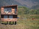 Après retour au camping, il ne reste que la bande à Lalo, les autres sont déjà parti au parc naturel, il ne reste que notre tente, avec Sylvain on la démonte et après on a chargé le pickup puis direction le parc naturel, et c'est pas très loin en moins d'une heure on y était. Arrivé là-bas on arrive dans un camping qui donne sur le lac c'est magnifique et au loin on voit le volcan enneigé. On a monté les tentes et puis on a testé l'eau et elle est pas bien chaude quand même :) Après ils ont tous un peu comaté, de mon coté j'ai fait un petit tour dans les environ et puis en fin d'après midi Ariel et sa copine nous ont proposé d'aller a la pêche avec eux, ils sont super sympa les 2, donc direction la lac, Sylvain a commencé à ramer mais il a un peu de mal, il n'arrive pas à avancer droit :) j'ai pris le relais, Ariel a mis les deux cannes à pêche dans le lac on a fait un bon tour sur le lac et puis on l'a traversé et la on a trouve un bon coin, ça mort et Ariel nous attrape un poisson, il est pas mal il doit faire dans les 500-600 grammes.