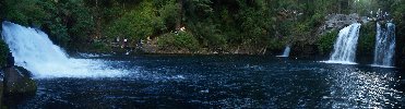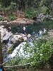 Déjà on part dans le sens inverse du lac, je demande où on va et JP me dit que c'est des cascades, arrivé là bas y'a un parking payant et trop de monde, y'a plein de touristes, après c'est joli mais bon y'a vraiment du monde partout, après on arrive à une petite cascade et un bassin où l'eau est bleu, et là d'un coup on voit Lalo sauter dans l'eau de 3-4 mètre de haut, JP et BigMac ont suivi, de notre cote on avait pas prévu ça donc on a les maillots de bain mais pas sur nous, et puis y'a vraiment trop de monde, tout le monde se fait prendre en photos a cet endroit.