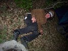 Sylvain est resté sur le bord du lac, il est trop mort, arrivé sur l'ile tout le monde s'est cassé la gueule dans la boue, ça glisse trop, on est remonté jusqu'aux arbres pour squatter et après retour à la berge du lac au loin y'a Sylvain qui m'appelle, il est parti le long du lac, avec Moto on est les premiers à arriver, je sais pas ce que font les autres mais ils sont encore sur l'ile, ils ont fini par rentrer.