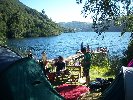 Ensuite on est retourné à la voiture pour manger et puis retour au camping où des potes à eux sont là, ils sont 8 je crois, on a pas mal parlé avec les nouveaux gars et Moto, et les filles ne sont pas comme les autres en fait y'a 3 couples et un ou 2 gars en plus, y'a 2 frères, une américaine et les autres sont chilien. De mon coté j'ai bien parlé anglais, c'était nickel, pendant ce temps Sylvain picole beaucoup, il montre sa cicatrise du genou et donc se casse la gueule par ce qu'il a le pantalon sur les chevilles, après ils tombe tout seul par ce qu'il n'arrive pas a s'arrêter de rire :)