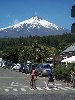 Arrivé là-bas on va voir un gros volcan avec de la neige au sommet et puis le lac c'est vraiment beau, on a changé de paysage, ici il y a pleins de forets. Il est déjà tard, la nuit va bientôt tomber et on a traversé la ville pour trouver un camping, on s'est installé avec des bières et leurs piscola.