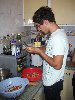De mon coté j'ai pas été endurant, tout le monde parle espagnol je comprends rien, parler en anglais je suis tellement fatigué que c'est pas facile mais je regarde tout le monde en essayant quand même de comprendre un peu ces discutions en espagnole et puis je regarde Sylvain qui a foutu du riz sur la tête de Lalo et balance un concombre sur le mur, les autres aussi ont balancé le concombre mais pas aussi fort que Sylvain, ça a bien claqué sur le mur.