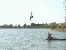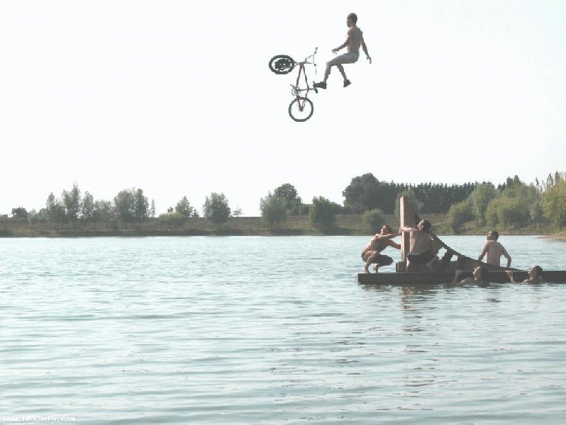 Apres on est parti sur l'idée d'aller faire du water jump avant d'aller au trail, histoire de ne pas faire comme la veille et rouler vers les 16h en transpirant comme des phoques. En plus, tout est la, à 20 minutes de chez David... un lac chauffé aux effluents chimiques plus un banks... Avant de partir, on attend que Alex, Daniel et un anglais arrivent. Direction le lac, en passant par le trail histoire de récupérer ceux qui y sont déjà, et c'est donc un cortège de 16 voitures qui se dirige vers le lac.