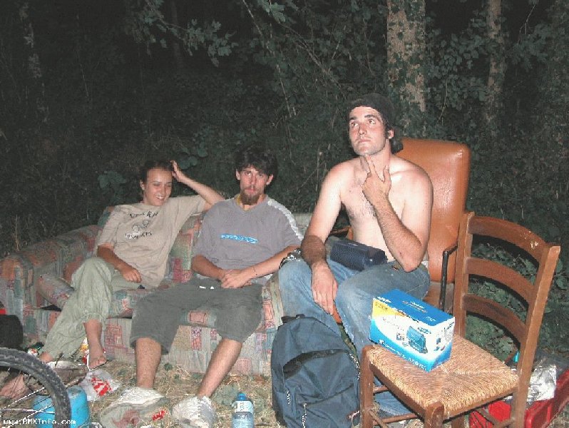 On arrive tard dans la nuit a Lagupie... Quelques gars partent rendre visite aux riders qui dorment sur le trail, et David fait tres vite connaissance avec les fesses de Valentine (en profitant lâchement du sommeil de FX...) tout le monde se fait réveiller à 5h du mat, puis, se déplace péniblement jusqu'à chez David pour dormir...ou essayer...