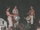 La soirée s'est bien passée, un groupe de percus est venu jouer, relayé par une petite sono quand ils préféraient aller boire du punch, les liteuls sont toujours la pour mettre de l'ambiance aidés par Valentine et un barbecue ne fait jamais de mal. Et avec la route qu'on avait fait et malgré les liteuls qui mettent l'ambiance, je me suis endormi dans la banquette de la 2cv, avant d'être réveillé par un liteul qui faisait couler de la cire de bougie sur mon pantalon... donc, je me suis enfui, pour me coucher entre deux bosses sur des mousses. Donc pour ma part la première journée s'est surtout résumée a dormir...
