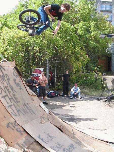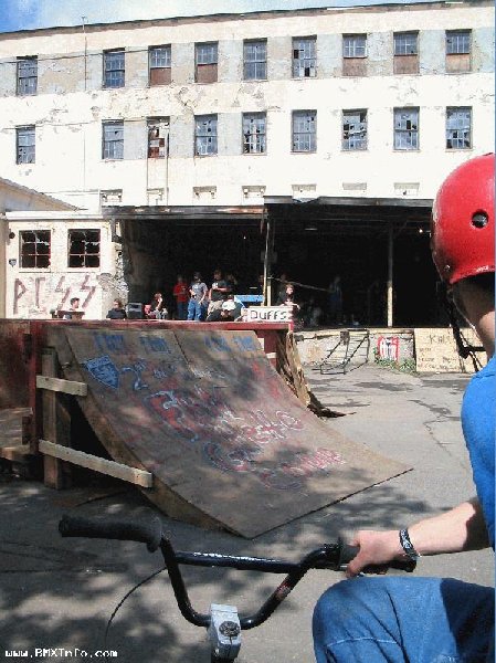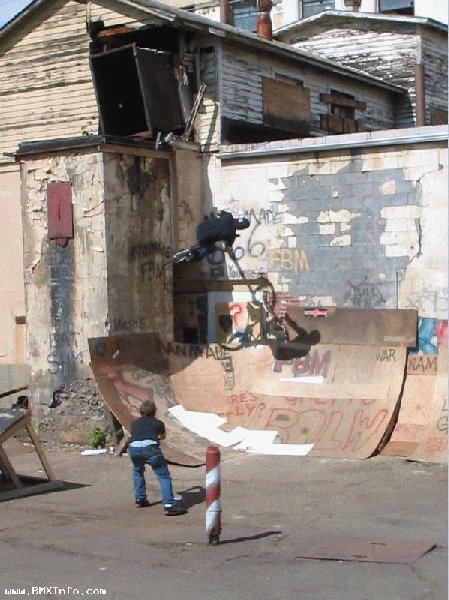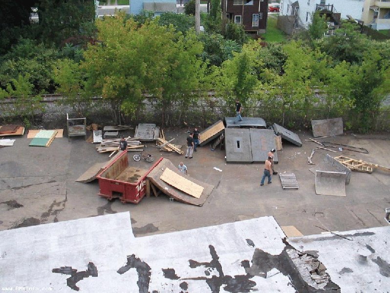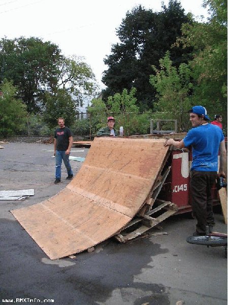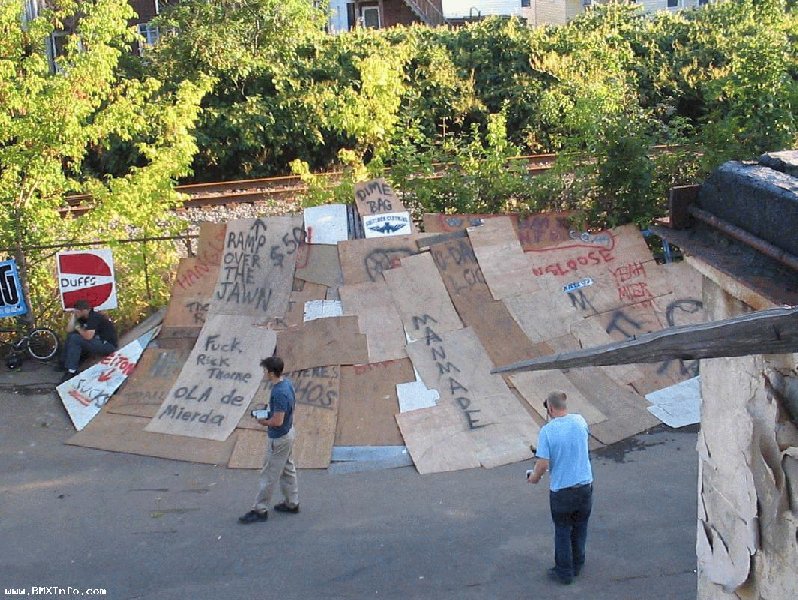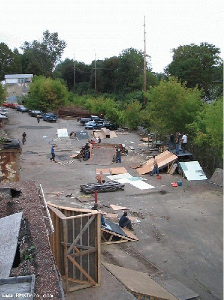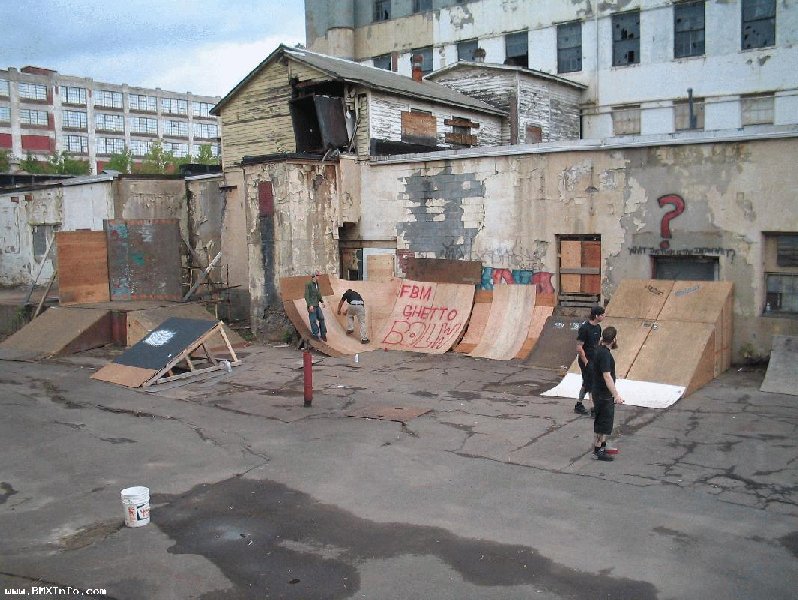 Pendant qu'on demontait ces cloisons, Chicken (c'est son surnom) a commence a faire le quart de bowl dans un angle de mur, et le park a commencé a prendre forme. Y a quelques photos de la construction sur le site FBM http://www.fbmbmx.com/ghettopics1.htm (Le lien ne marche plus...) et on vois Chicken sur la deusieme photo.