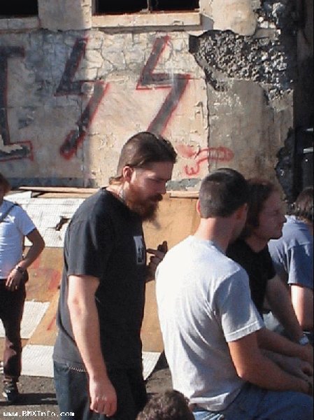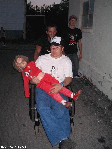 Ensuite, Crandall a acheté des pizzas pour les mecs qui ont bosse donc on a fait une petite pause, et pendant ce temps, Crandall a commece a faire des tags sur les rampes et il dessine vraiment bien. Apres, on a fini le Doritos et Broke a taggé le logo ECD que j'avais sur mon t-shirt sur le Doritos, et apres Vince a ecrit deux trois trucs sur le Doritos comme Hangloose et Flava et moi, j'en ai profité pour ecrire www.bmxinfo.com sur le cote du Doritos donc peut-etre que vous le verrez dans une video... là bas, personne connaissait bmxinfo.com mais vous, vous connaissez :-)