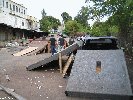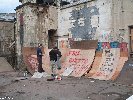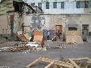 On demande a Crandall s'ils n'ont pas besoin d'un coup de main pour faire les modules... j'ai jamais fait de modules et ça peut-etre marrant et être une bonne experience. Crandall nous dit \"pas de problemes mais c'est dangereux...\". Mais c'est pas ça qui va nous arreter :-) et on part avec Dave (un des soudeur FBM) dans le batiment desaffecte qui est juste entre l'usine FBM et l'endroit ou il y aura la Ghetto Comp, et la mission dans ce batiment, c'est de trouver du bois. A premiere vue, le batiment est bien crade et l'escalier pour acceder au batiment est recouvert de 3 cm de crottes et de cadavres d'oiseaux...