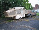 Vers les 11 heures, on est parti a la soiree. Pour les 40 premiers miles, tout s'est tres bien passe, mais apres, les indications n'etaient pas top et je comprends maintenant pourquoi Keith m'avait dit \"good luck\" en voyant les indications... enfin bref, on a voulu telephoner a Dirt d'une cabine mais ça ne repond pas, il doit etre sous biere encore :-) et la, on voit 4 voitures de flics passer devant nous. Il fallait se rendre a l'evidence, on etait perdu et Vince commençait pêter un peu les plombs, donc on a fait demi tour avant de croiser des voitures dont l'une a un porte velo avec un BMX. On claxonne mais ils tracent sans s'arreter et là, Sofian est parti a leur poursuite (c'est dire faire demi tour et reprendre la direction de Johnson City), mais bon avec sa caisse, il peut les suivre et nous on a fait ce qu'on pouvait pour les suivre aussi avec la Oldsmobile, jusqu'au moment ou les mecs se sont arrete a une station et en fait, c'etait Van, Wizmeski, Martinez et deux, trois autres mecs, et en fait, la soiree etait finie, les flics ayant debarque... surement les 4 voitures qu'on avait vu tout a l'heure. Donc on est rentre sur Johnson City en suivant toute la clique et en arrivant a leur hotel, la Oldsmobile est bien chaude et le liquide de refroidissement bout un peu :-) apres on est parti dormir dans notre hotel c'est a dire dans les voitures a cote du park. Mais 5 minutes apres s'etre couche, Vince pête un peu les plombs et en a mare de dormir dans la voiture et est a deux doigts de couper les ceintures qui sont sur le siege avec un cuter, mais bon, je le raisonne un peu en lui expliquant que c'est pas notre caisse, et apres, il est parti dormir dehors.