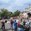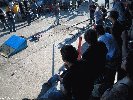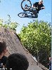 En me levant, je passe au park de la Ghetto Comp et Jeff Harington et Chris Hallman roulent, et par la meme occasion je vois Vince[/v] qui se leve. Il a dormi pres des canapes juste a cote des modules. On a recupere nos velos et on les a rejoint pour rouler avec eux. Jeff Harington nous fait des trucs bizarres ou plutot pas courant comme des sauts sur la fun box en restant assis sur la selle ou des sauts de la fun box en mettant sa tete a cote de la roue avant, quand a Vince, comme toujours :-) il a bien roulé avec le wall incurvé, un petit transfert de la courbe qu'on a fait a la reception de la fun box, quant a moi, j'ai passe mon temps a essayer de faire mon premier wall incurvé, mais en general, ça se finit par une bonne chute jusqu'au moment ou je l'ai enfin rentre, juste a temps car en 10 minutes le park s'est rempli et ça devenait dangereux de rouler.