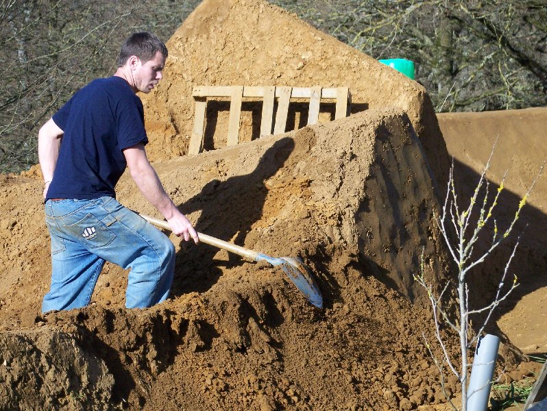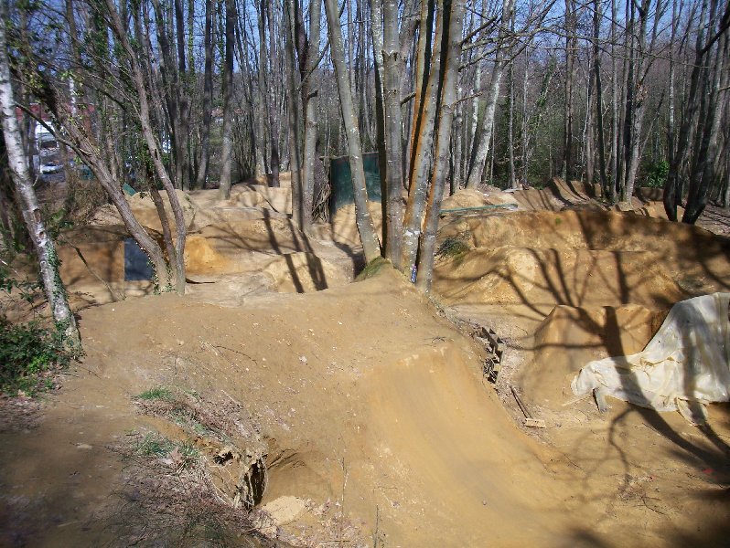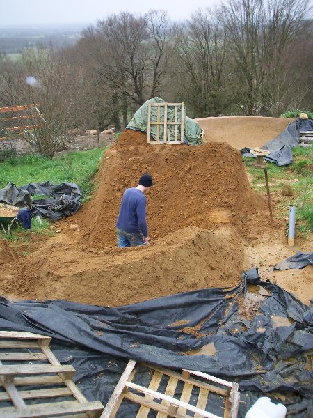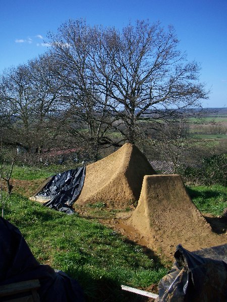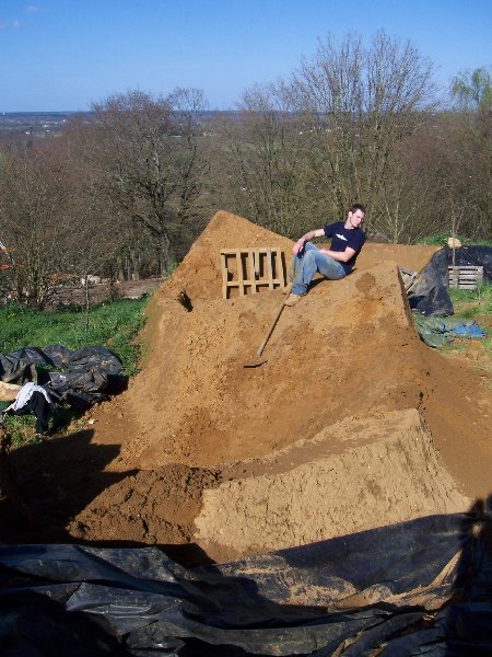Tout le trail est bâché pour l'hiver et Nonos est en train de creuser tout en bas il avait fait un gros dôme mais c'était pas super, donc la il nous fait une bosse en virage.