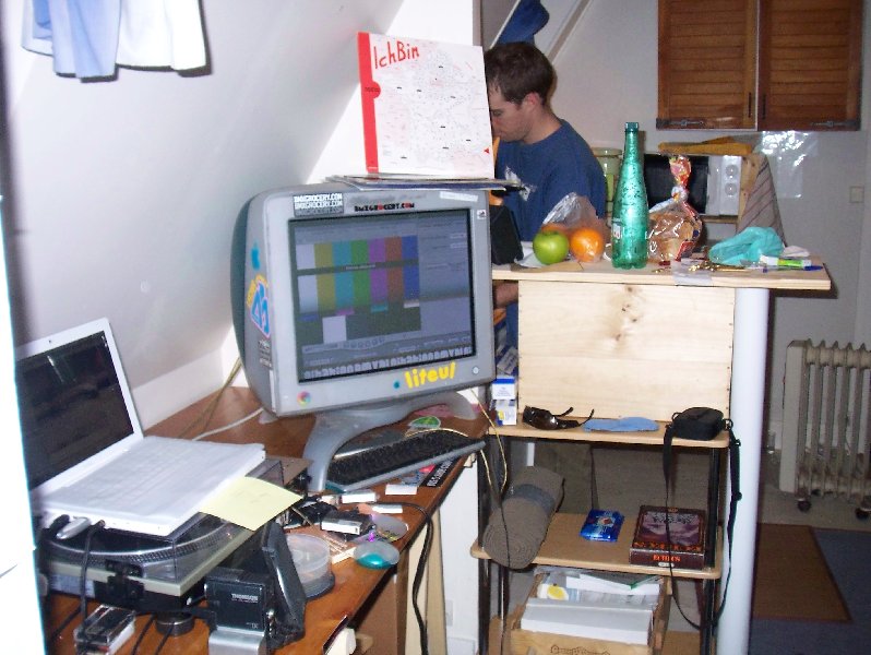 On dépose nos affaires chez Beubeu qui habite en face du bar, là j'ai pu voir le Mac que m'a offert Beubeu : un bi-pro PPC 450 Mhz, enfin bref j'étais content !