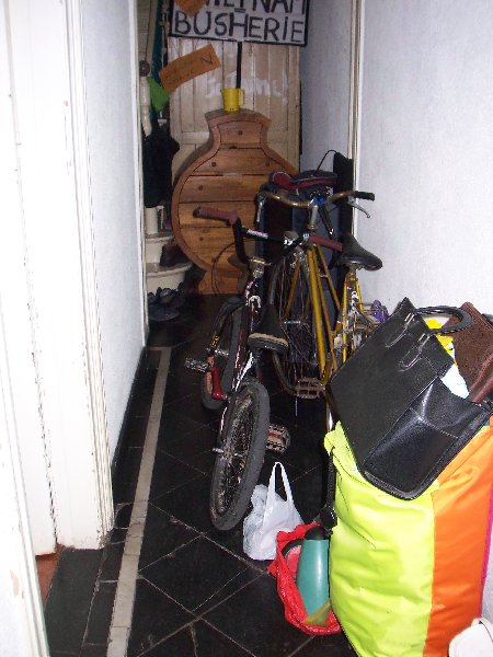 Le lendemain pendant que Beubeu était au boulot, j'ai montré a JB les trails qui traîne dans le coin. Ceux qui connaissent reconnaitront les trails qui sont en photo. On a commencé par le trail près de chez Beubeu et après on est allé de l'autre côté de Paris voir l'équipe Jesus creuser. Depuis que je suis parti, c'était la premiere fois que je retounais au trail, et ca m'a fait plaisir de voir que l'équipe Jésus a bien pris le relais et que le trail est loin d'être mort ! Et puis ca m'a fait plaisir de revoir tout ce monde, et puis toutes ces bosses que je connais si bien... Avec JB on est parti faire quelque courses pour le Beubeu et puis acheter un petit pack pour l'équipe Jesus qui a soif.Après tout ca on est allé voir le FX à Paris, Beubeu et Franky nous on rejoint. On nous avait prevenu et c'est bien vrai : FX est plus parisien qu'un parisien ! Après son petit passage àvide il est reparti comme en 40. Après FX voulais nous emmener a la Maroquinerie, mais on était bien fatigué, on a preferé rentrer en faisant une petite pause au bar des Pignols.