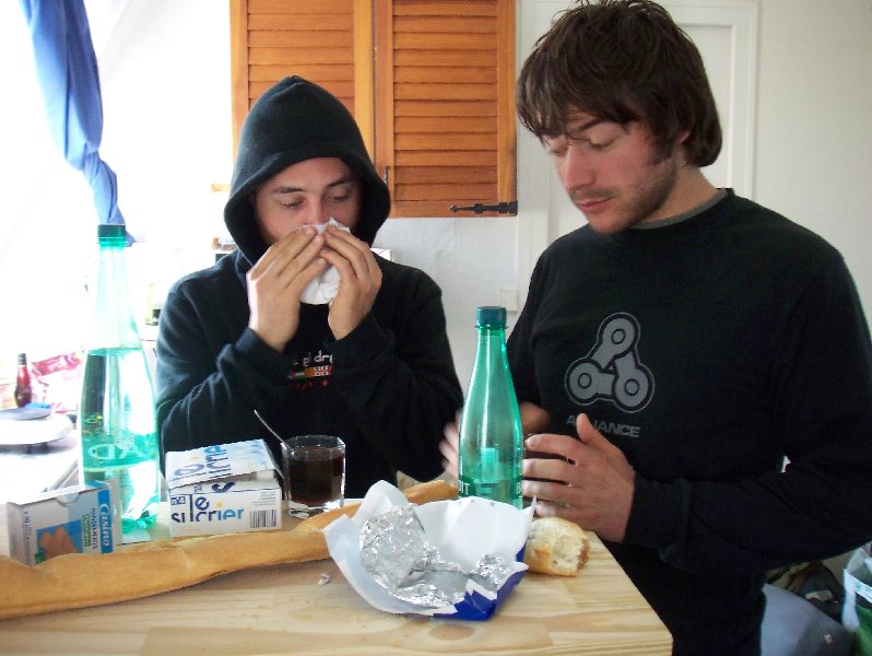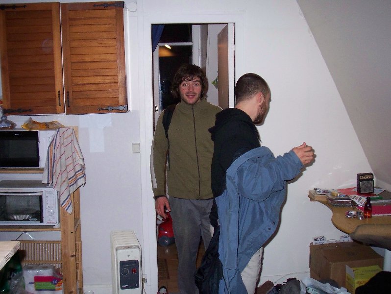Après en rentrant chez FX, y a eu deux trois trucs drôles et puis on s'est arrêté dans une boulangerie puisqu'il était 6h, et puis on a dormi à 7 dans le 10 mètres carré de FX.