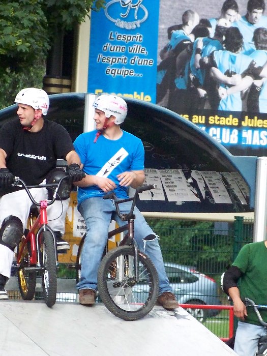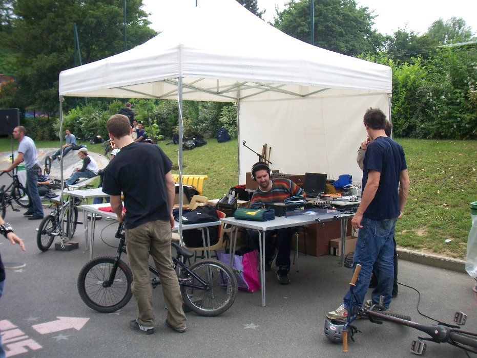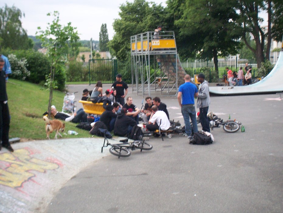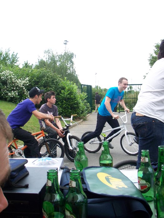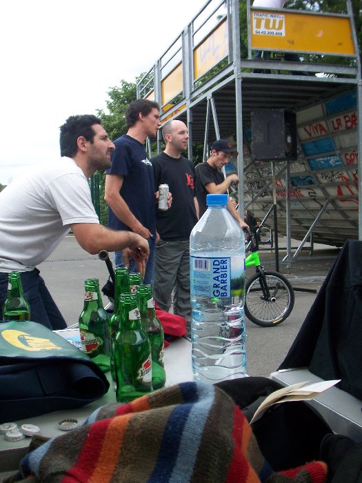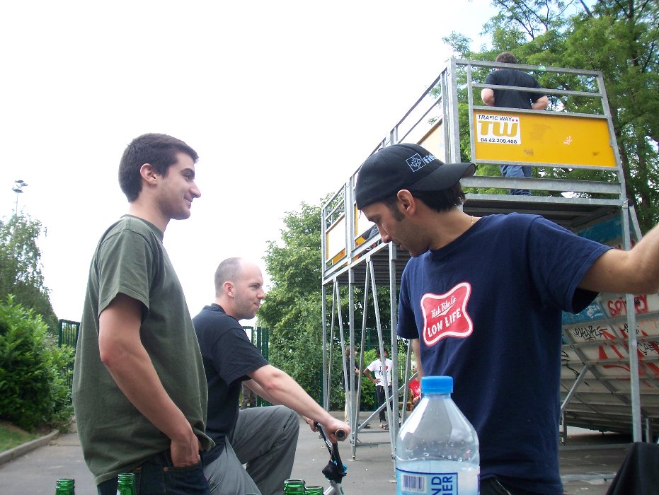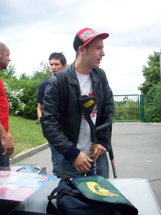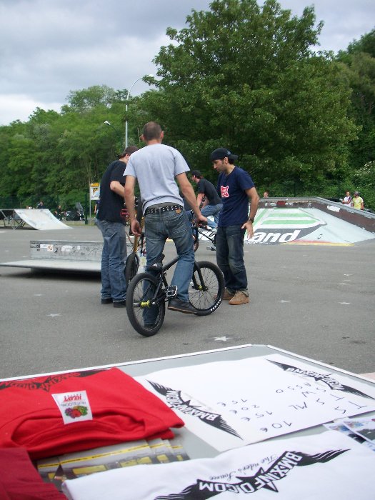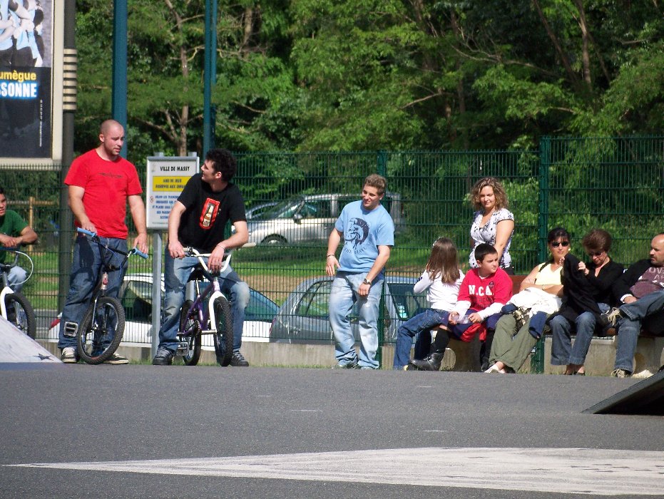 Le lendemain on devant partir en convoit avec Noar, Alex, Richard et autre mais bon liteul oblige on est parti avant eux :) Arrive a Massy vers 13h y a deja du monde et Toto est la avec Uriel, on commence a s'installer Beubeu aux platines avec Uriel et moi avec mon stand t-shirts bmxinfo.