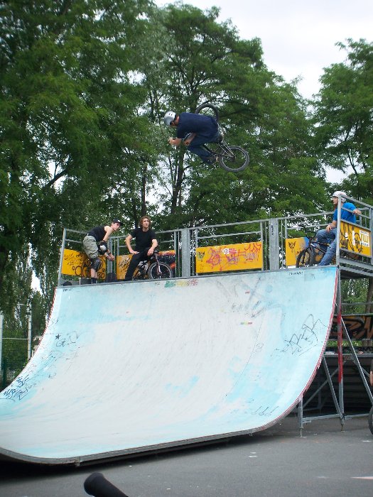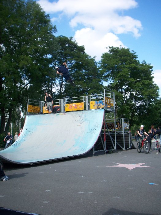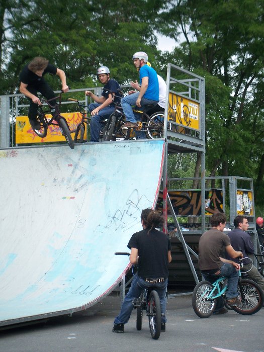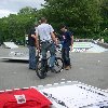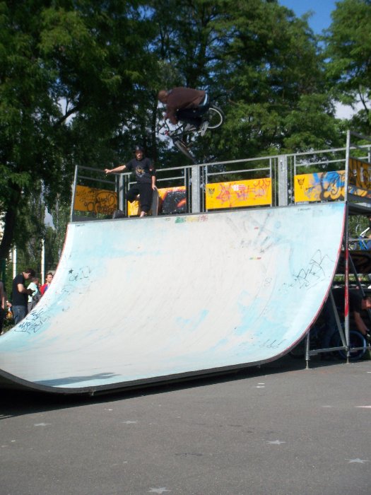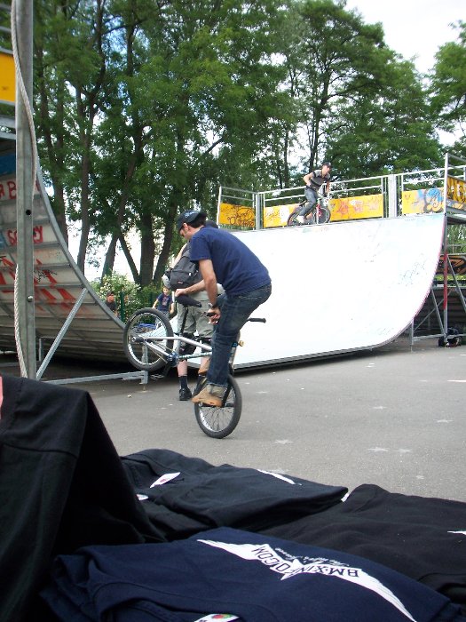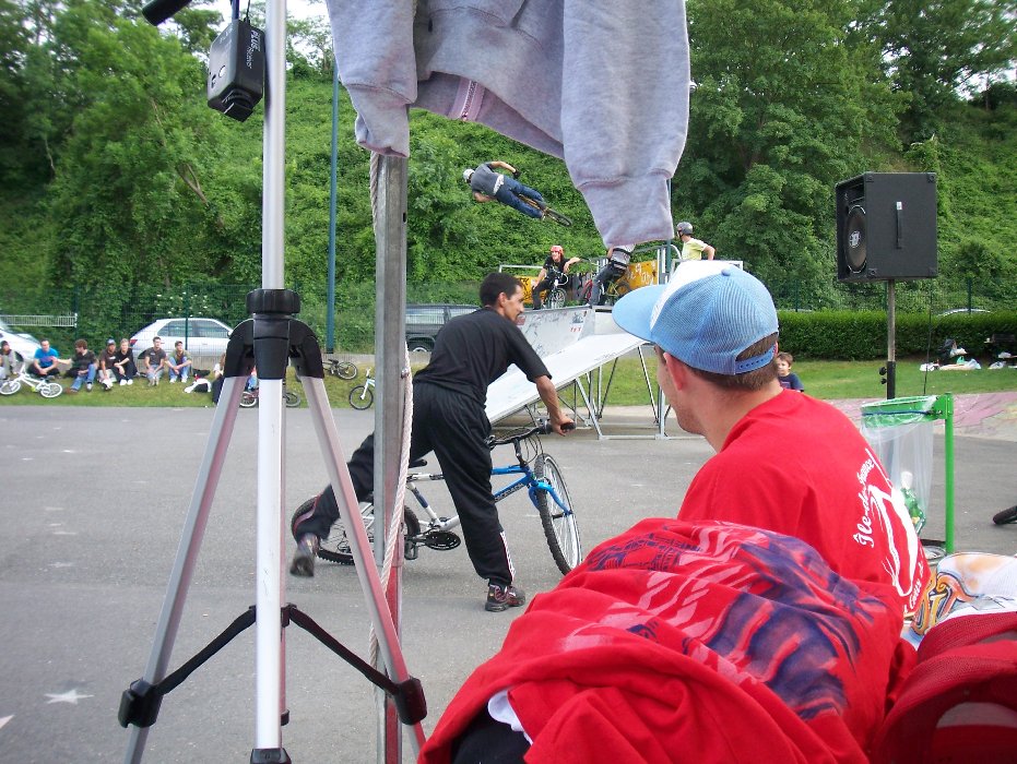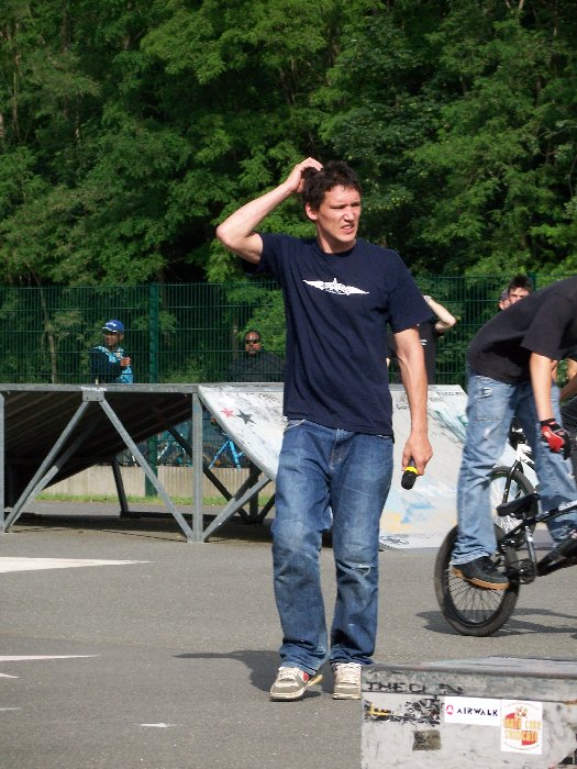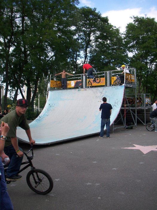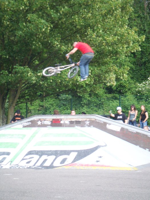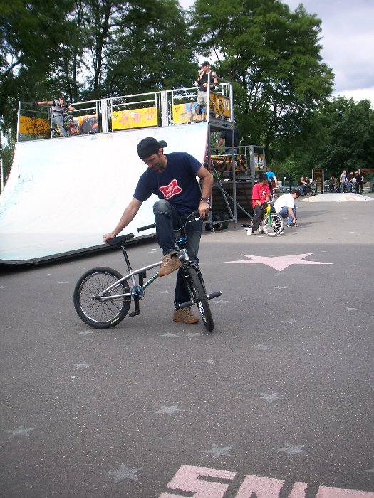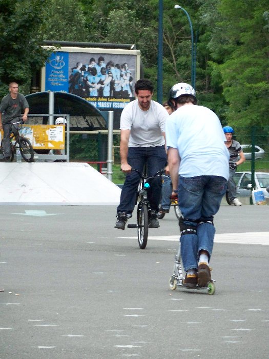 Le lendemain on devant partir en convoit avec Noar, Alex, Richard et autre mais bon liteul oblige on est parti avant eux :) Arrive a Massy vers 13h y a deja du monde et Toto est la avec Uriel, on commence a s'installer Beubeu aux platines avec Uriel et moi avec mon stand t-shirts bmxinfo.