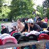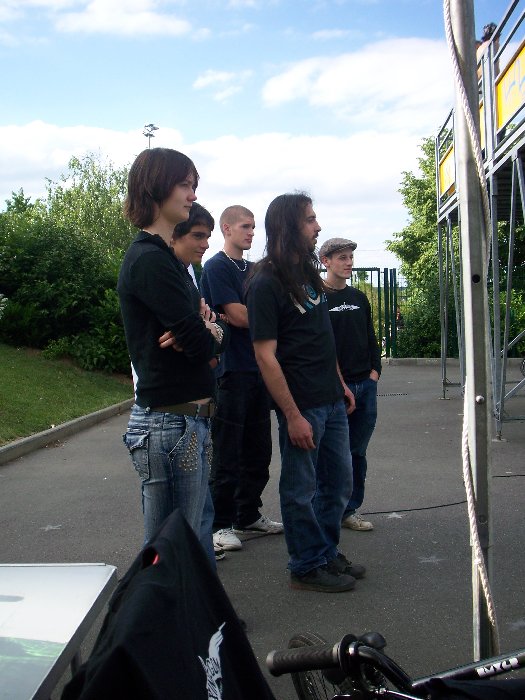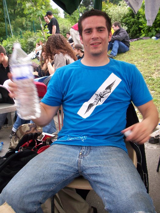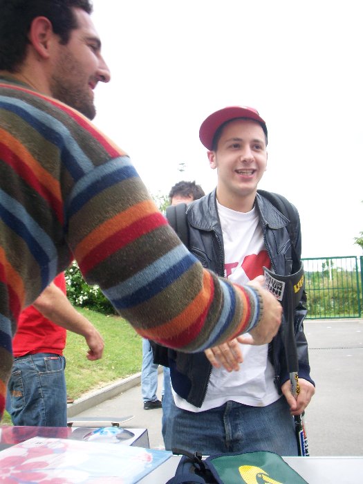 De mon cote je reste a mon stand, mais vu que j'ai pas l'ame commercial je fais fuire les clients, de peur qu'il achete quelque chose, et puis comme un con je donne autant de t-shirt que j'en vent, j'arrive pas a faire le commercant c'est fou, bref on s'en fou.