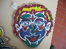 la fresque en carton a été réalisée durant le centre de vacances la ferme picarde, a la chaussée tirancourt, courant juillet 2008 et plusieurs enfants et adultes furent exploités, utilisés, enfin, employés... euh, conviés à , ou invités... à peindre ces masques et cette magnifique ôde a la sOmme et à sa baie occupée par les vaches, les phoques pour une bonne partie de l'année, par de nombreux tracteurs et quelques rollers bladers...
