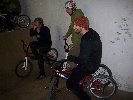 A Leioa, Jem's et Poulet passent des heures à se suivre pendant qu'Igor roule un peu partout. Il est pas très stylé mais polyvalent : lips tricks sur le pool, nose pick footjams partout même en whip... Le soir plein de monde traine autour du bowl dont pas mal de bmxers espagnols et les autres qui reviennent de streeter. Jem's fait des inverts archi poussés sur un hip, John rentre bus tail tap 540° avec son style net control (quelques années à trainer en teuf l'ont pas trop dégradé mais toujours sous double-capuche) : acclamés par les espagnols ! C'est la fête et ce n'est que le début car quelques heures plus tard on sort en ville avec Cousine qui nous a rejoint. On se retrouve dans de longues rues étroites parsemées de bars. Ambiance joyeuse, sympathique mais difficile d'accoster une petite brune quand une féroce lesbienne se met en travers de la route, tel un banner béton armé d'un bouc. Y a qu'à goûter le Patxaran. Changement de bar et l'ambiance devient de plus en plus joyeuse avec les bmxers espagnols. Le retour ne sera pas des plus rapides mais folklo, avec Supervinasse et Gonz' qui s'appuient épaule contre épaule pour mieux tenir l'équilibre, mais font quand même de bons zig-zags. 5h : hôtel.