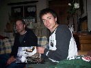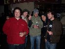 Le soir, il est grand temps de rejoindre Dindon et sa copine, Nounours, Bastouille, Sylvain Fabre et Laurent les lopettes, Garluche, Manu et leurs copines, JB, les locaux d'Urkatu tous déguisés. On est à Bayonne et c'est bien la fête dans les rues. Bonne année partout nana ni nana nin. Grosse ambiance dans un bar assez bien fréquenté où on peut squatter la rue comme on veut. Les shooters enflammés font de l'effet et les gens deviennent visuellement flous alors j'aurais bien voulu raconter la suite mais ça m'a fait comme un trou de mémoire quand Godasse et Banban m'ont raconté qu'ils m'avaient aidé à rentrer dormir ailleurs que sur le trottoir. Menteurs ! Ils voulaient se coucher. Point noir pour Poulet et Jem's menacés d'un pauvre type au chalumeau. Tout ça pour piquer les lunettes de Poulet.