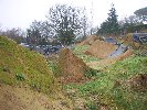 Le champ de bosses se trouve un peu plus loin dans un côteau. Il faut monter un sentier pendant environ 100 m. C'est tout petit, mais ils ont du creuser dur dans cette terre noire pleine de cailloux. Heureusement Jon Ross les a aidé pendant qu'il habitait à Bilbao. Il y a trois doubles moyennes puis un hip à droite qui envoi vers le bas, virage à droite et hip à gauche trop mouillé pour rouler. C'est pas très lisse. Ringo amorce le bal avec de la hauteur et du flow, selon Supervinasse Thomas Gonz' fait des condors sans lacher les mains. Jem's fait des 360° et des whips puis se force un peu et rentre no hand one foot du premier coup : respect. Après il fait superman, on continue de rouler à une petite dizaine pendant que les autres regardent ou prennent des images. La nuit tombe et on retape les bosses avant que JB et Ringo ne repartent vers Anglet.