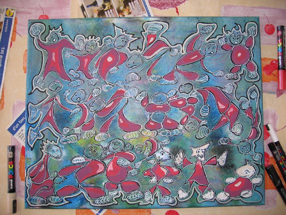 bon, un peu de peinture pour décorer, quelques visages, ils font un peu la gueule... c'est normal c'est l'hiver