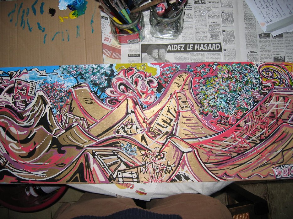 ça me rappel des croquis à 2000 bosses que je gravai sur mes agendas, mais en noir et blanc, là les tons de couleurs sont bien originaux!! chapo(sca) !!!