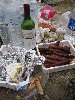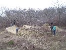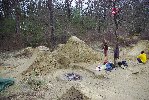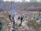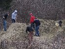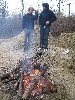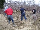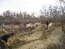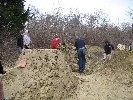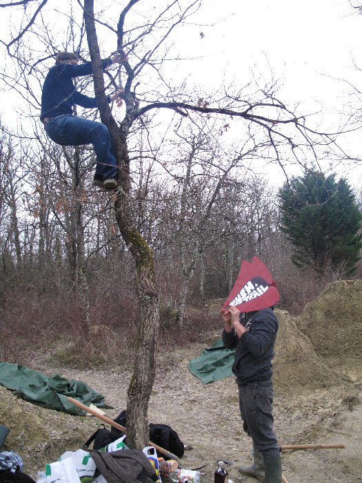 Il y a des mecs assez fous pour passer un week-end de beau temps à creuser...alors qu'il y a un skatepark tout neuf en ville. J'ai un peu de mal à comprendre ça, surtout en hiver. Ces fous sont venus de Toulouse, de Paris, bref d'un peu partout. Je voulais les aider mais je me suis fait une entorse de l'oreille gauche la veille; alors j'ai pris des photos (et j'ai bouffé le barbeuk). Désolé pour le style des gars sur les tofs, mais ils étaient réellement comme ça. A croire que ces types ne regardent jamais le web ou qu'ils ne se déplacent à aucun contest: pas 1 slim, pas une casquette NewEra visière plate. C'était vraiment le moyen-âge. Il y avait même des psychopathes qui portaient des bottes en caoutchou à la place des Nike! Pour la bouffe, aussi, j'ai halluciné: les gars préfèrent se faire chier à allumer un feu et faire griller des saucisses alors qu'il y a un MacDo à 5 min. Pas une cannette de Monster ou de RedBull, ces fous picolent du rouge! Le Moyen-Age, vraiment!