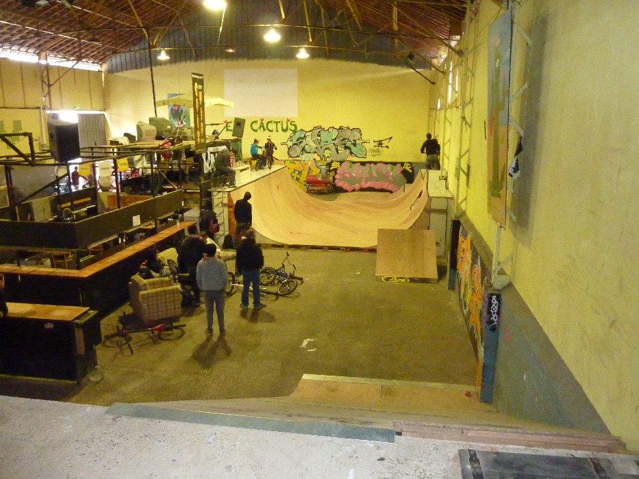 Les 1& 2 décembre 2012,cette petite jam nous a donc permis de rider à l’abris pour la somme ridicule de2 Euros. Pour l’instant ils ont construit une bonne mini très large (environ 15 mètres) bien raide, environ 1m70 de haut, petites plateformes d’environ 50 cm collées l’une au mur pour les walls l’autre à un grand bar pour ? Attention à pas trop picoler en ridant c’est marrant mais ça peu vite mal tourner (dont drink and ride you must spill your drink)